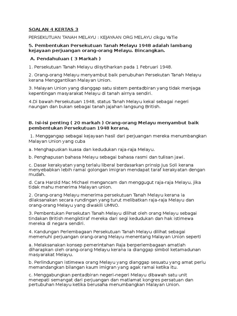 Cadangan Jawapan Kertas 3 Tingkatan 5 Bab 4 Malayan Union Pdf